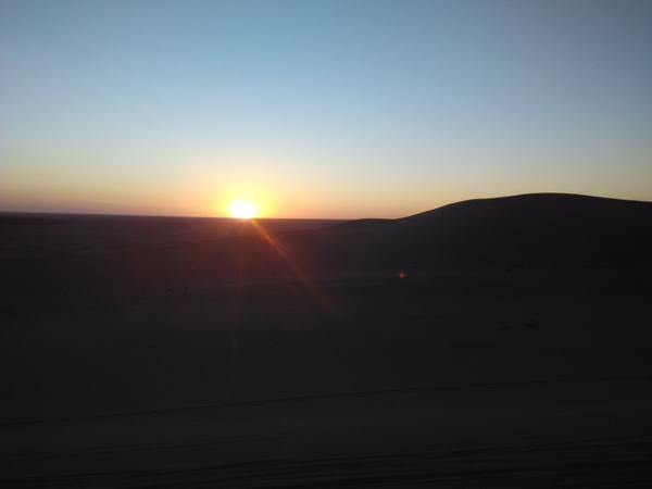 我们看过海上日出, 看过山顶日出, 然而我们很少见过沙漠日出,早上五点的敦煌并没有一点天亮的趋势,我们一行人浩浩荡荡还打着哈欠就这么出发了 。