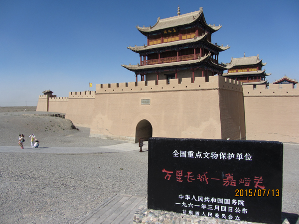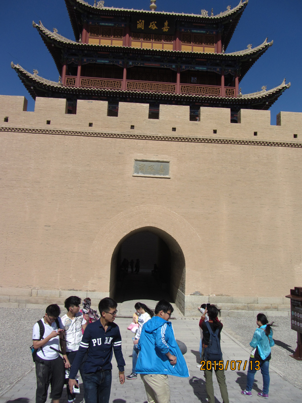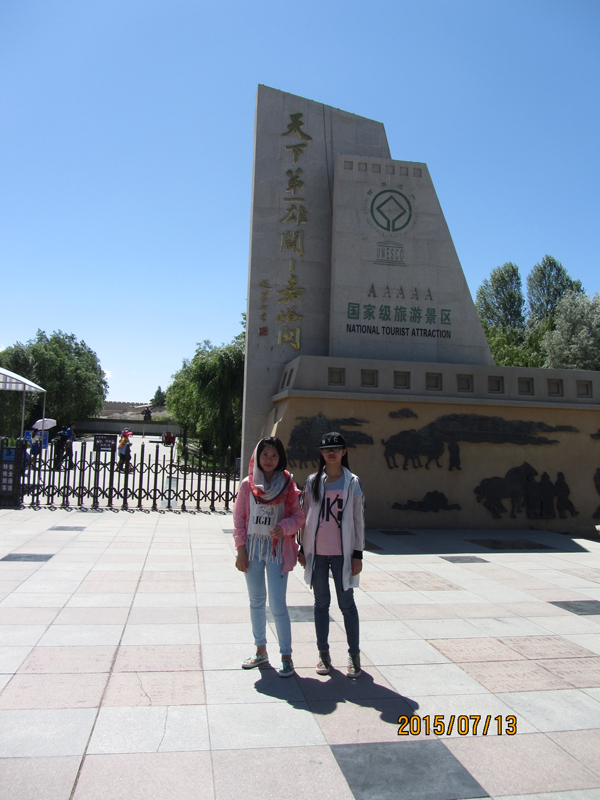 驱车赶回嘉峪关。嘉峪关城楼,一座国家边缘保卫国家领土抵御敌人的城墙,它威武雄壮气势凌人。古代人民用他们的智慧与劳动铸就了它,才有了今天的叹为观止。由于古代的责任承包制我们还可以看到砖瓦上留有他们的姓氏而并非如今的“到此一游”,便感觉和古代的他们离得更近了。当然由这一城墙也不难看出当时明清朝的盛世繁华。
