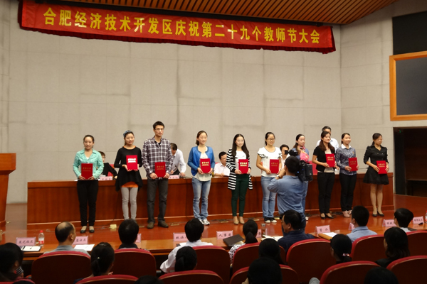 胡成勇(左三)在教师节表彰会上