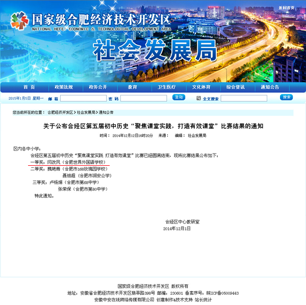 近日从经开区社发局第五届初中历史“聚焦课堂实践,打造有效课堂”比赛上传来喜讯,我校首席教师,初中部历史老师闫改凤获本次比赛一等奖,在此表示热烈祝贺!