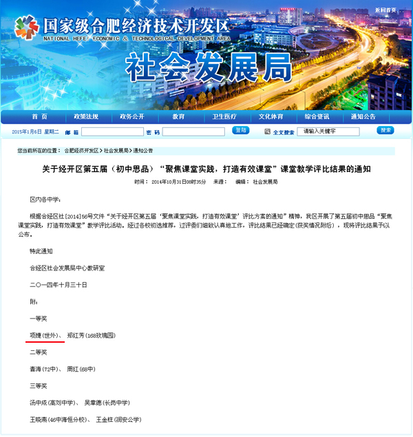 在经开区第五届(初中思品)“聚焦课堂实践,打造有效课堂”课堂教学评比中我校初中部骨干教师项婕荣获一等奖,在此表示热烈祝贺!