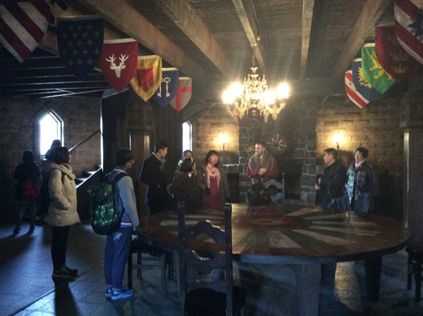 我们首先参观的是骑士与国王开会的圆桌会议室,中世纪骑士的铠甲、兵器和旗帜让我们感受到浓浓的骑士气息,随着工作人员的讲说,我们仿佛身临其境,回到了古老的中世纪和武士一起出征,兵戈铁马,傲笑战场!
