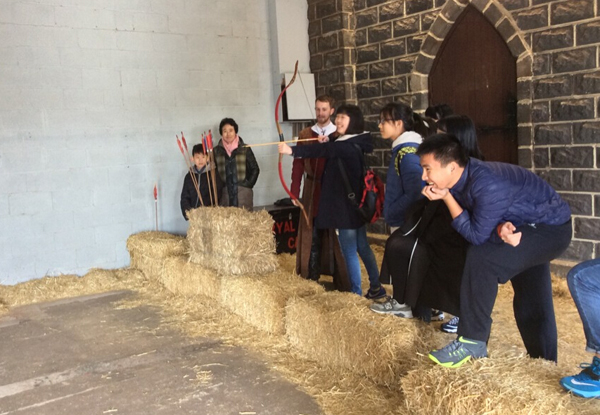 接着我们满怀着激动的心情去了射箭场,我们的心情随着一枝枝箭的射出也愈加亢奋起来,古老真实的弓箭拿在手中,看起来容易,射起来确实很难,只要有人好不容易射中靶子,气氛就无比高涨,笑容在大家脸上久久挥之不去。