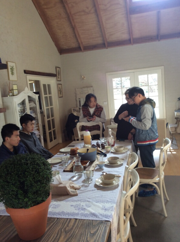 今天早上,我们依依不舍离开了城堡,由司机带我们来到接待所。我们被分成了两组,两家农场主分别把我们带到各自的农场进行一天的农场生活体验。一路开车,沿途景色迷人,草原逶迤一望无际,湛蓝色的天空下,不时有只袋鼠在草原上跳跃,几匹骏马在草原奔腾,伴随着迷人的景色,我们来到了农场主的家。