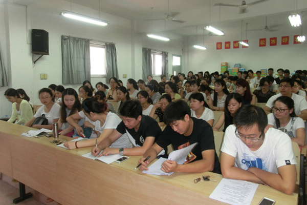 第一天的培训工作主要围绕两方面开展。一是方主任为全体教师解读本次校本培训的要领,其目的是让老师们清楚了解培训思路,进而更好的提升自己。随后,韦媚副主任对培训方案进行了细节上的补充。从学部两位主任对培训方案的解读中可以清晰地知道本年度的校本培训工作将以学校与教师的发展为根本, 以学生的发展为根本,一切从实际出发,理论联系实际,为教师的专业成长和学校持续发展 提供广阔的学习空间。下午的培训以教师的专业知识测试展开,语文组、数学组、英语组、综合组的老师分别在不同的考场进行了测试,测试内容为学科专业知识和教学设计,实行单人单桌形式,严格按照考试流程,规范操作。