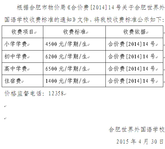 来源:合肥市物价局 作者:admin 发布日期:2015-05-06 浏览次数:15234