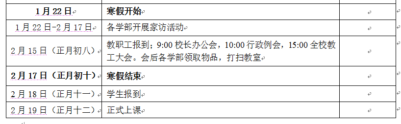 2015-2016学年下学期开学前安排