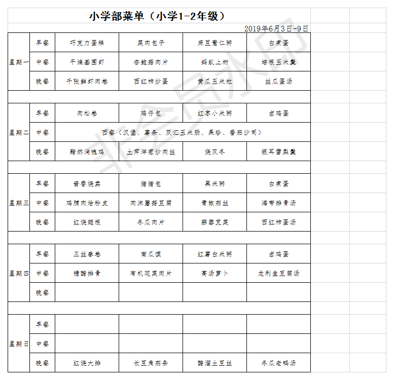 小学部(1-2年级)菜单2019.6.03-6.09