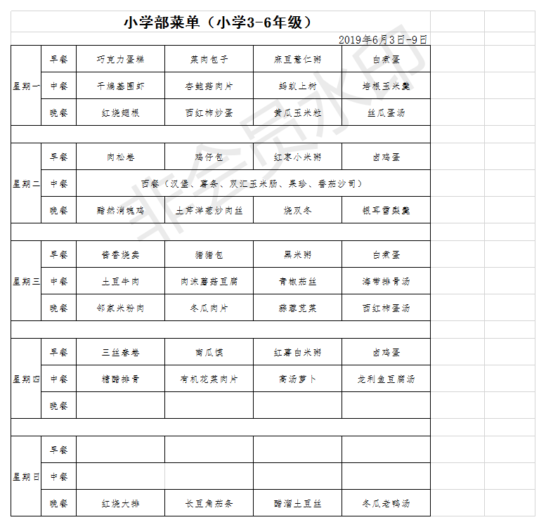 国际小学部菜单2019.6.03-6.09