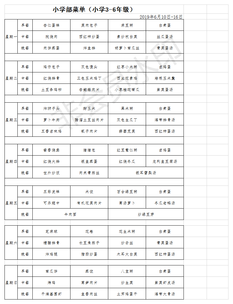 国际小学部菜单2019.6.10-6.16