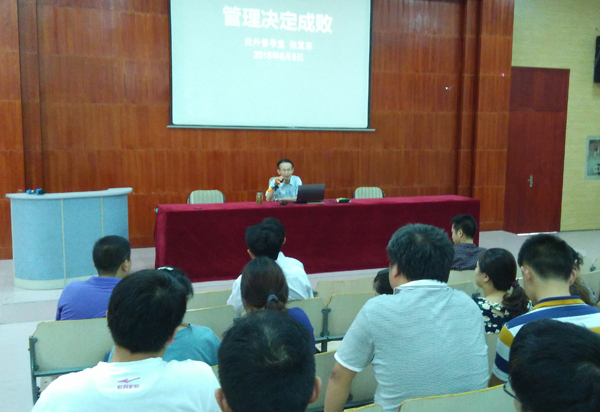 刚进入八月,我校2015年度校本培训工作在各学部如火如荼地展开,纵观本年度的校本培训,培训形式多样,培训内容丰富,各学部在培训安排上针对教师的专业素养和教学能力。6日下午,全校教职工进行了一次集中性培训,本次培训的主题是聆听我校督导室张发东主任的讲座——《管理决定成败》。