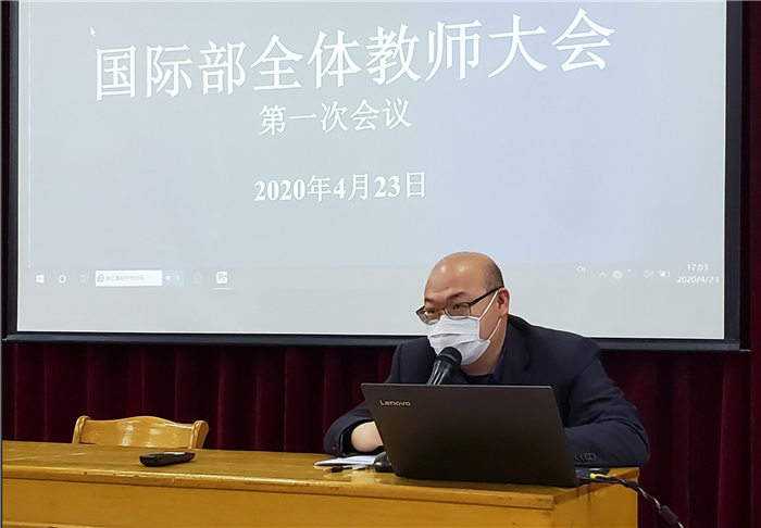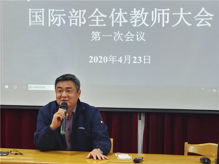 校长唐海平分析了当前国内国际疫情形势,他要求全体老师积极做好疫情防控工作。针对各位老师的教学工作,他要求大家修炼内功,积极突破创新。对于国际部招生工作,唐校长提出”招得来,留得住,学得好“九字箴言。唐校长表示,学校各部门为国际部的发展提供一切支持。