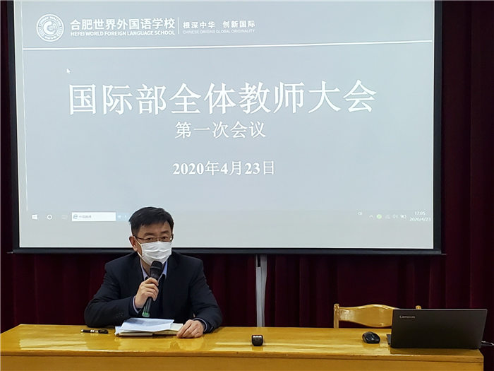 人间四月,草木皆绿,繁花似锦。为迎接本周合肥世界外国语学校国小高年级段、双语初一、国际高一的返校复学,有序开展新学期的各项工作,4月23日下午,学校国际部全体成员于集萃楼三楼报告厅召开新学期国际部全体教师会议。本次会议由国际部副主任姚志华主持。
