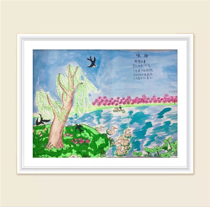 诗配景,显新意。景中诗,诗有情。打开心窗,深吸一口气,让风儿吹进心田,携着花儿的芬芳。让我们一起携手畅游在诗词的“画海”里,共同欣赏二年级以“古诗与绘画”为主题的精彩创作,一起感受“诗与画”的美境。
