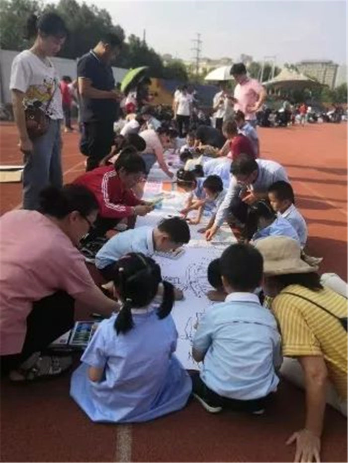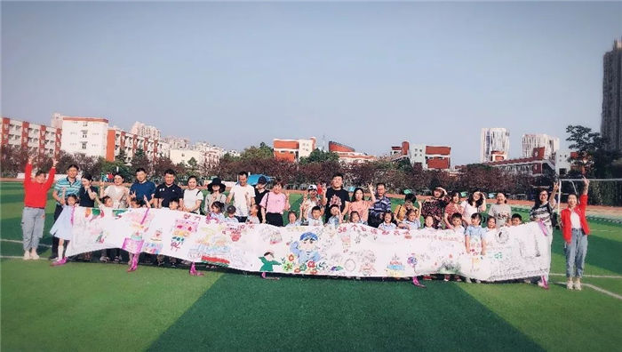 此次活动,不仅培养孩子的爱国情感,而且通过百米画卷图画的共同创作,增进了孩子们之间的交流与分享,培养孩子良好意识。