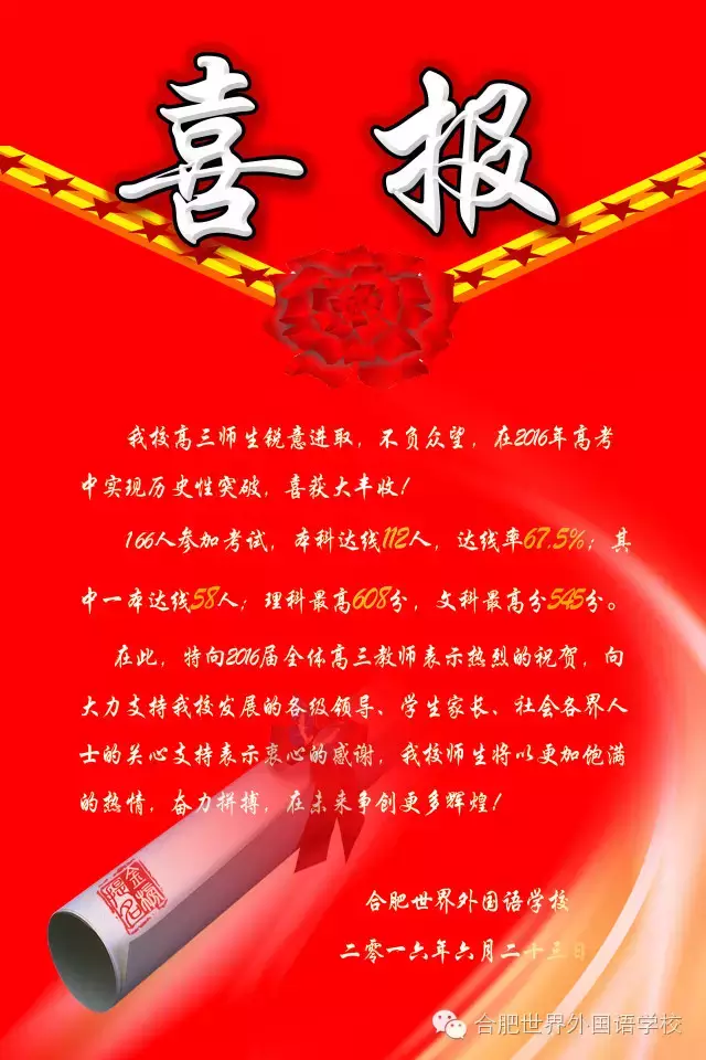 【高考喜报】热烈祝贺合肥世界外国语学校2016高考再创新辉煌!