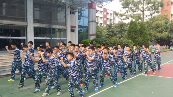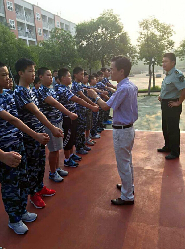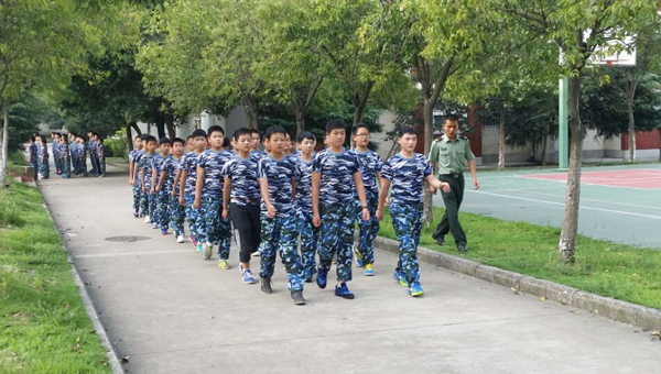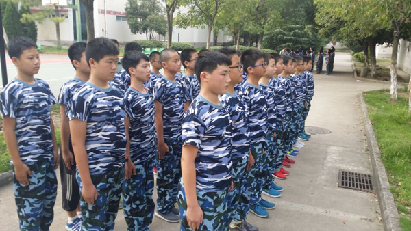 绿油油的草地上,一群身穿迷彩的活力少年整齐的站着军姿,有力的踏着正步,喊着响亮的口号,唱着激昂的军歌。当走进训练场时,各营班主任就站在旁边,很认真的看着自己的学生训练,张校长也在指导着新生的训练,对他们的训练提出了要求,希望能够帮助他们养成良好的习惯。远望过去,是整齐的方块队,有的站着军姿,有的走着正步,有的练着跑步,真是一群世外的好男儿。