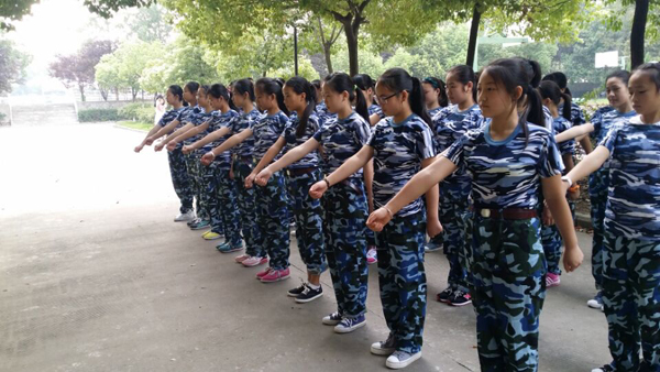 穿着整齐的校服,站在基地的训练场上,稍息、立正、站军姿、走正步……同学们就这样在教官的指挥下一遍又一遍地操练着。即便是这样单调枯燥的训练,对于习惯端坐在窗明几净的教室里的同学们来说,无疑也是艰苦的。虽然这几天合肥的天气凉风习习,天气宜人,可同学们还是不一会儿就汗流浃背,但他们个个始终神情专注,用心训练。