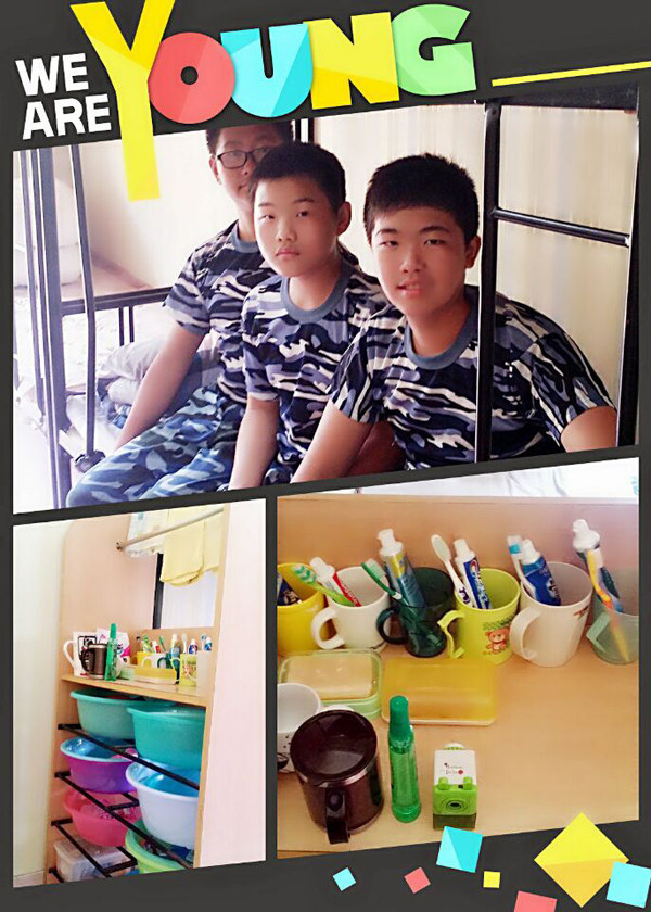 结束训练后,当孩子们拖着疲惫的身躯,走进宿舍时,心中总是有一片温暖。午饭后,大家走进宿舍,回到属于他们的小天地时,心情总是格外的放松。在这里,他们成为了好友,共同度过艰苦的军训;在这里,他们互相说笑,为闲暇时光增添一抹亮丽的颜色;在这里,他们欢聚一堂,欢声笑语……平时的宿舍生活,同学们也会互相帮助。今天她有些不舒服了,便为她打来饭菜;谁少带了生活用品,相互借用一下。同学们互相帮助,共同努力,这无疑让孩子们意识到了军训生活中友谊的重要性。同学间的相互帮助,也是一种坚持的力量。