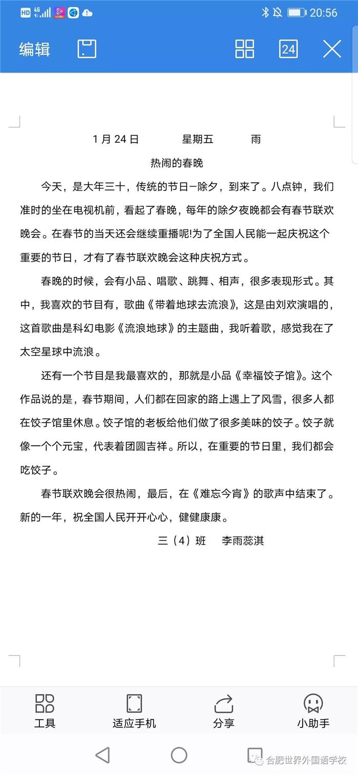 来源:合肥世界外国语学校 作者:刘培蕾 发布日期:2020-02-06 浏览次数:1081