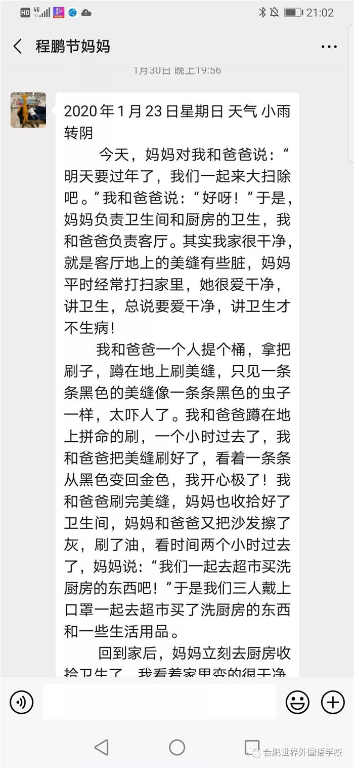 突如其来的疫情,使我们欢乐祥和的春节变得和以往有些不同。没有了往年的走亲访友和聚餐旅游,我们只能天天无聊的“宅”在家中。面对延迟开学,如何让这个超长假期变得丰富多彩呢?快看合肥世界外国语学校三年级的同学们是怎样做的吧!