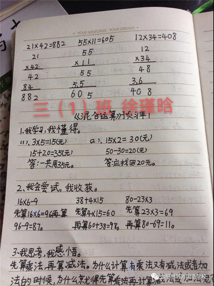 合肥世外小学三年级网上教学第一天