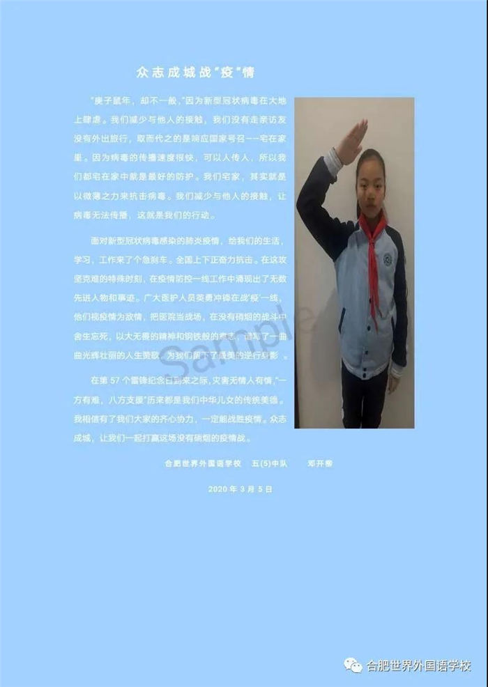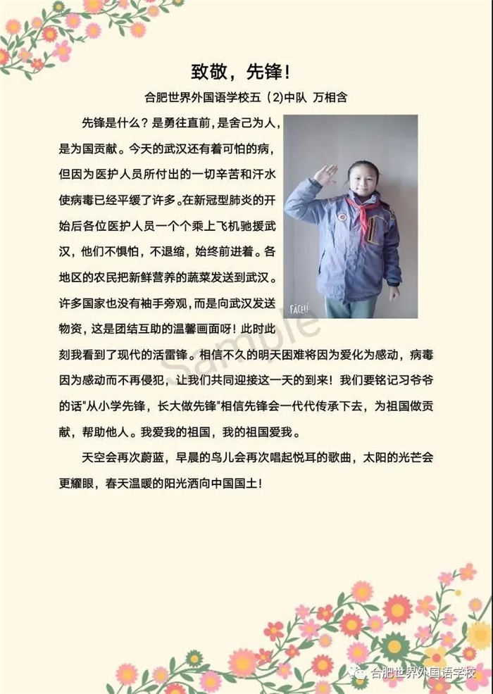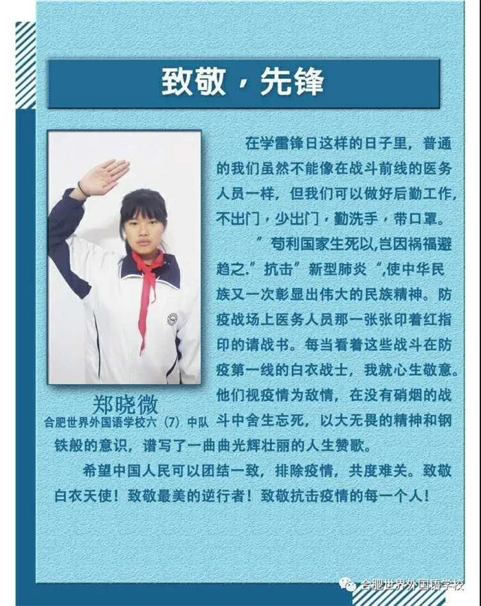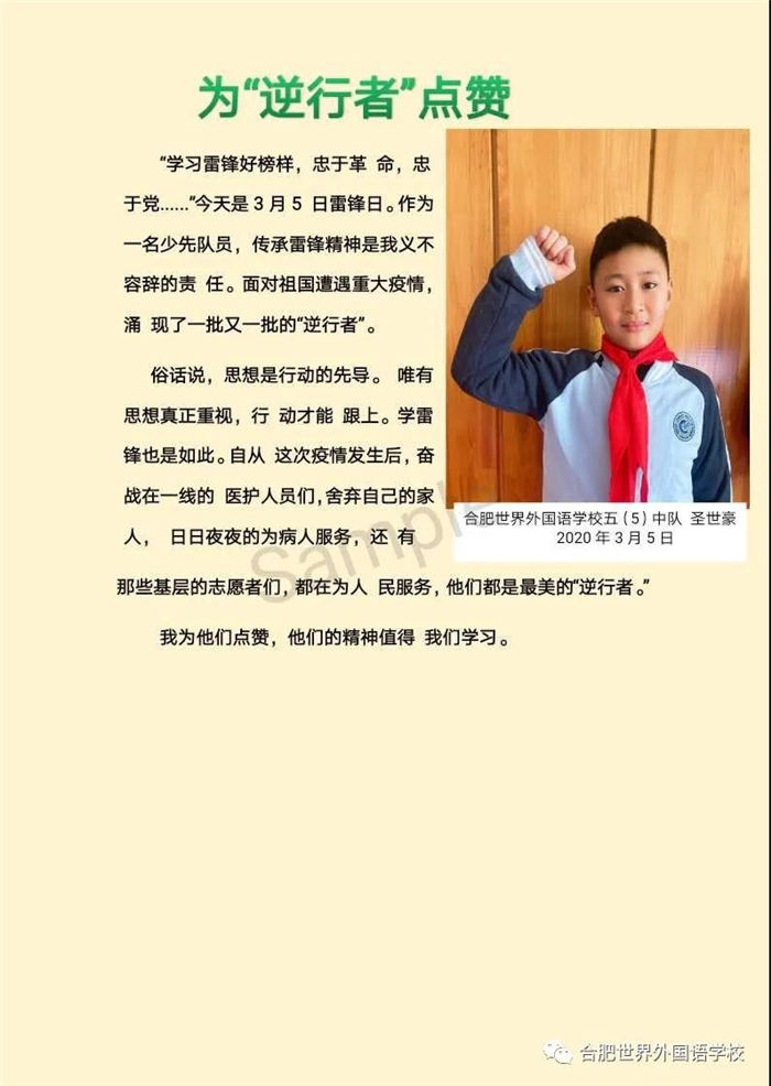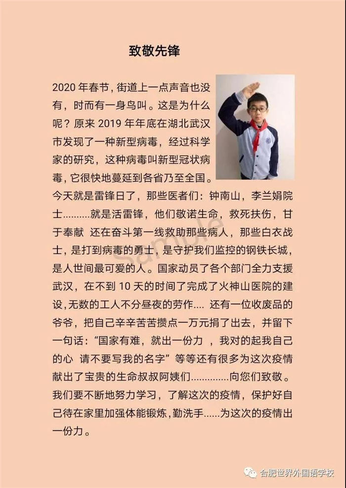 来源:合肥世界外国语学校 作者:少先队大队部 发布日期:2020-03-06 浏览次数:1097