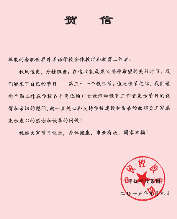 第三十一个教师节到来之际,中锐控股集团发来贺信