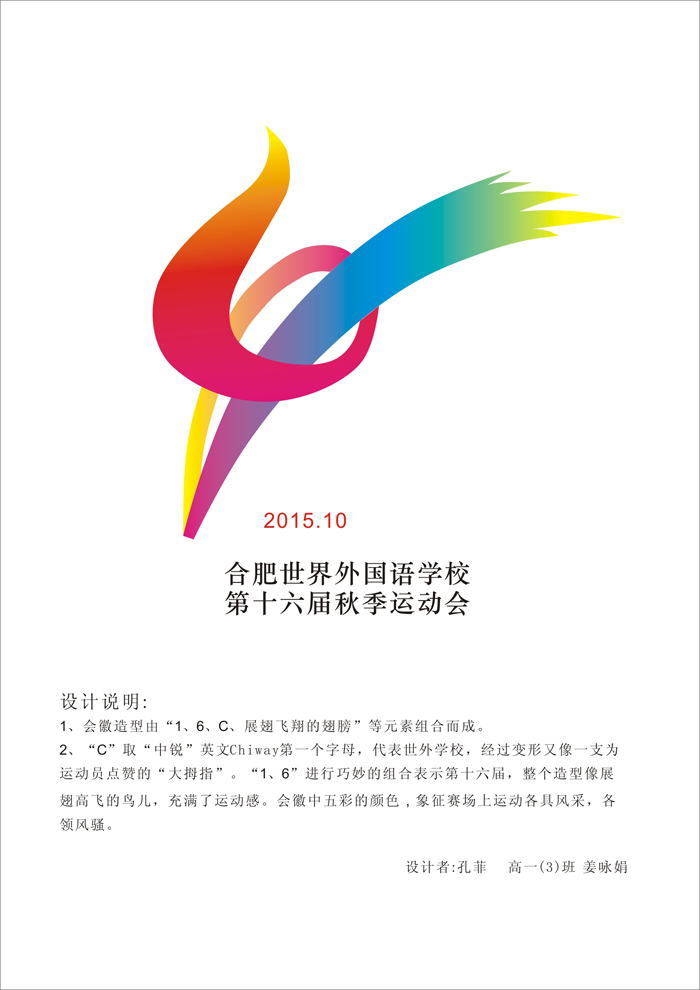 10月12日,我校将举行第十六届秋季运动会。运动会会徽、吉祥物于9月7日面向校内外师生广泛征集,师生投稿积极踊跃。经学校第十六届秋季运动会组委会审核,确定以下设计作品为本届运动会会徽和吉祥物。