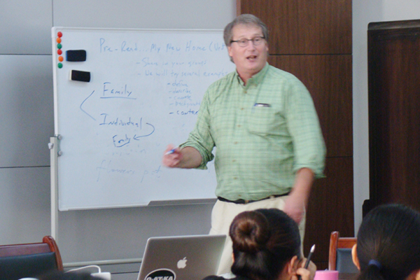 Kyle Tong先生自1999年开始先后20余次来到合肥,无偿培训中小学英语教师300余人次。这次他在与学员的交流中表示,老师的职业很高尚,不同于商人,律师等职业,它不仅改变自己,改变家庭,最主要的是改变了下一代。他表示自己从1983年开始执教至今,教师这个角色随着时代的改变而改变,现在所寻求的是与学生的平等对话。他认为学习英语不仅是发展学生语言能力,创造学习语言的氛围,更主要的是让学生善于思考,要牢记考试并不是最终的目的。他希望各位老师能够把此次培训作为一场冒险,颠覆过去的传统教学模式,才能够得到更好的回报。