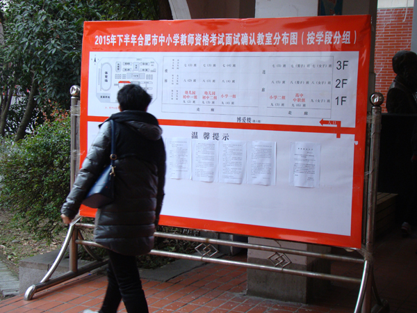 合肥市2015年下半年教师资格证面试现场确认工作在世界外国语学校举行