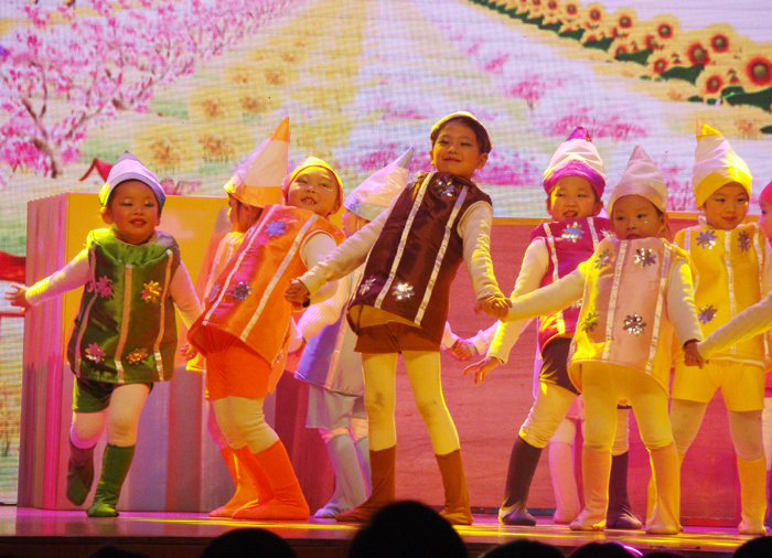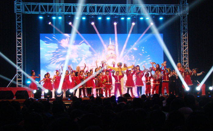 在光影交织的梦幻舞台上,幼儿园的舞蹈《七彩画笔》把观众带入了美好的童年,在璀璨绚烂的霓虹灯下,世外校园的小小儿童们正编织着缤纷的七彩时光。紧接着,华丽优美的民乐演唱《今日欢歌》、《五星红旗》;动感十足的街舞表演《Disco favor》;热烈奔放的的拉丁舞;优雅纯美的芭蕾舞《春天的芭蕾》,声情并茂的舞台剧《猫和老鼠》、《小小冠军梦》;家校同台《你是太阳,我是星星》的倾情放歌,富有中国传统文化特色的武术《少年中国》和京剧联唱《花好月圆》……台下的观众一次次被打动,掌声串起整场晚会。