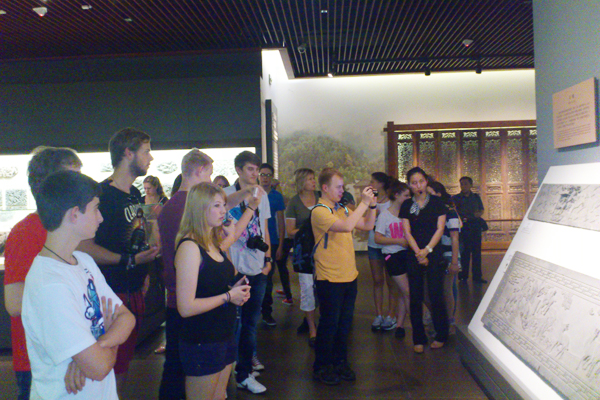 2013年10月10日下午,德国巴特黑斯费尔德青少年合唱团一行在世外国际部魏君主任的陪同下,参观访问了安徽省博物院。合唱团一行先后参观了《徽州古建筑》、《安徽文房四宝》以及《江淮撷珍》专题陈列,69位来自德国的朋友为独具风骚的徽州文化所折服。