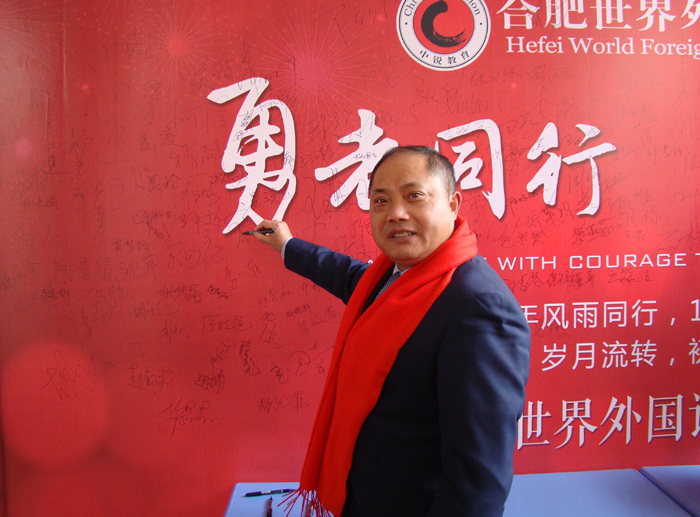 邵忠德校长在签名墙前留影