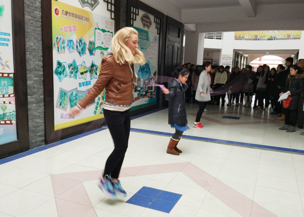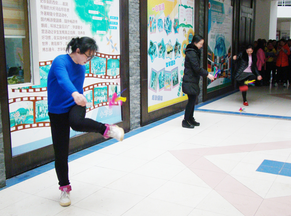 只听裁判的一声口哨,第一项一分钟快跳正式开始了,世外的“玫瑰”们轻装上阵,她们脱掉了平时上课的正装,卸下了工作时严谨的态度,此刻她们身着运动服,穿着轻便的运动鞋,随意、洒脱,展示了世外女性员工热爱生活的态度。一根小小的跳绳,摇动着友爱、勇气与力量。参赛的选手握住手中的绳子,演绎着另一种精彩。观战的同事们屏住呼吸,静待结果。跳绳结束后,紧接着便是踢毽子比赛,这场比赛见证了世外女员工的青春与活力。最后一项比赛“抛砖引玉”点燃了比赛的激情,大家的情绪达到了空前的高涨,现场气氛热烈。不知不觉两个小时过去了,当活动结束时,大家还有些意犹未尽,大家欢笑着离开集萃楼,但世外的记忆墙里留下了她们最真最美的芳香。“三八”节活动让我校女性员工从紧张的工作中放松下来,提升了员工的精气神,增强了团队的凝聚力;活动更让世外朵朵铿锵玫瑰们更加艳丽多姿。