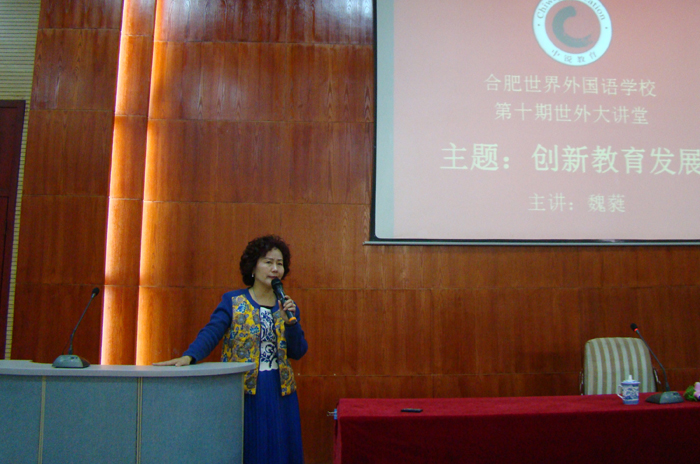 魏蕤女士与世外有着很深的渊源,她家人的子女与朋友的子女曾在我校就读过,因而她个人对我校“东西文化交融”的教育理念非常赞同,对我校教师表现出的高尚师德大加赞赏。她认为教师是高尚的职业,是人类心灵的洗涤师,教师一定要树立好严谨、博爱的榜样。大步车业良好的发展前景与企业背后的文化背景是密不可分的,大步人的勤奋、 规范、 精细、诚信 、共赢让大步车业创造了辉煌的历史。企业的发展靠得是信誉,是诚心。学校的教育发展靠的是责任,是真心实意的付出,教育的创新应符合孩子的基本诉求。在魏董心中:世外的教育理念尊重孩子的成长特点,顺应时代要求,是一所真正尊重教育的好学校。魏董坚信世外会在邵校长的带领下打造出合肥市的教育风向标。