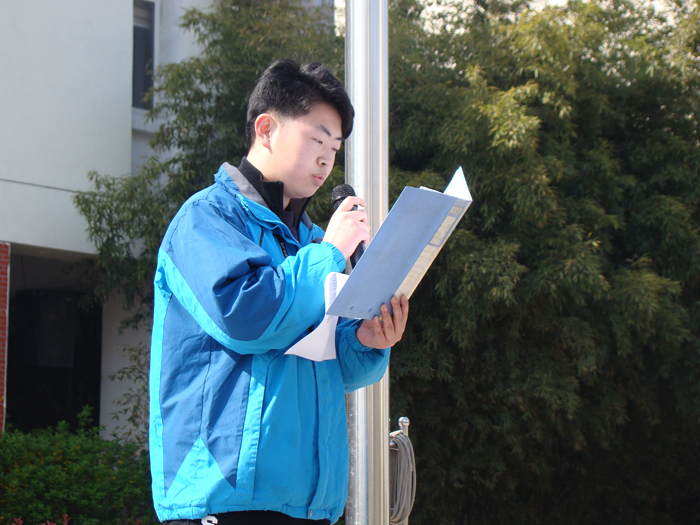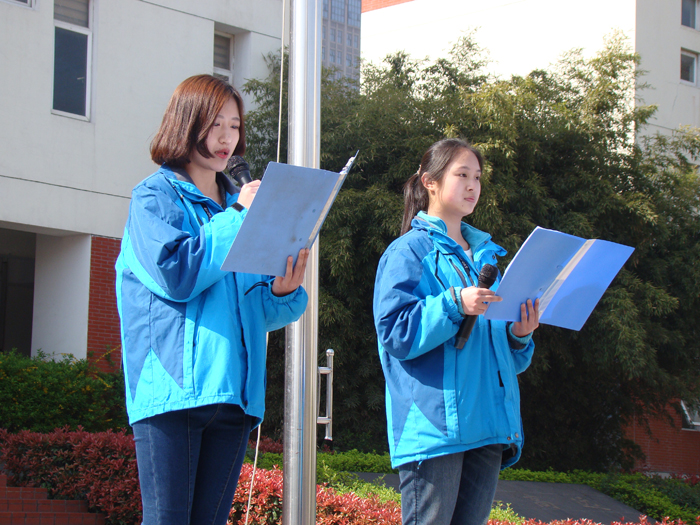 旭日和风中全校师生注视着那徐徐升起的五星红旗,在这个特殊的日子,本次升旗又多了一份对烈士的缅怀和对国家的热爱。升旗完毕,学生代表吴君翊上台发言,他呼吁所有学生,勿忘国耻,勿忘先烈,关注国家现况,他的发言让同学们深受感触。