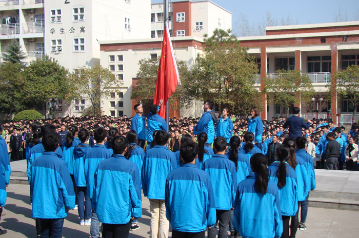2016年3月28日,我校高二日语班和高二艺术班共同举行了以“清明缅怀先烈”为主题的升旗活动。在本次升旗仪式上,两个班的同学们精神饱满地站在主席台上,在升旗手和护旗手的带领下,他们迈着矫健的步伐走向旗杆,庄严地向国旗敬礼,响亮地唱起了国歌。