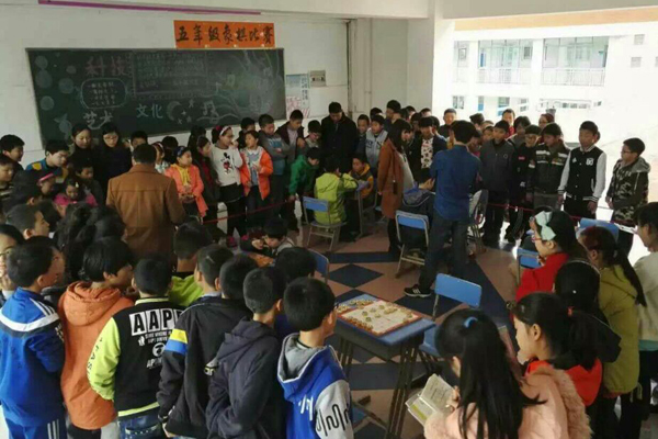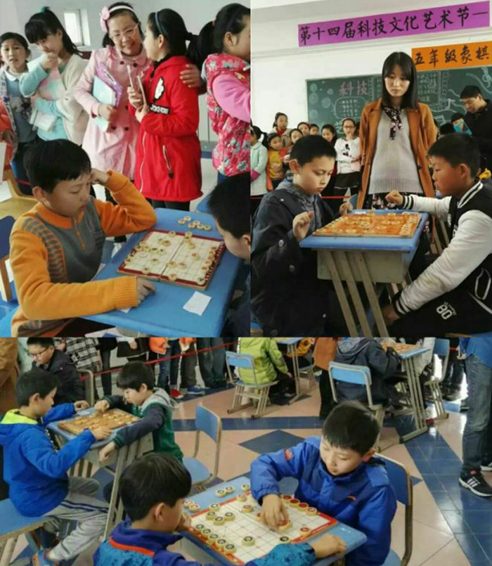 歌咏比赛精彩纷呈,回顾之前在小学部励志楼三楼大厅进行的“象棋比赛”也是阵容强大,各班挑选的象棋高手共24人参加比赛,比赛场地四周围上警戒线,观众们一律在警戒线之外文明观棋,评委老师由罗后同,王苗苗,赵明、李永善、张宏五位精通象棋的老师担任,他们分别站在选手的旁边,一丝不苟,严格执行比赛规则。年级组长宣布比赛规则之后,选手们开始了激烈的对战。瞧!小选手们个个表情严肃,沉着冷静。小观众们个个屏息凝神,生怕打扰了同学,棋路相逢智者胜,最终五(5)班雍正宇同学荣获“棋王”的称号。 象棋比赛奖项分别是:一等奖1名:二等奖3名;三等奖8名。选手们通过这次象棋比赛,不仅锻炼了自己,也开阔了眼界,懂得了“人外有人,天外有天”的道理。
