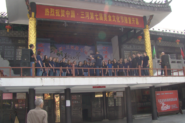 2013年10月11日,德国巴特黑斯费尔德青少年合唱团一行在合肥世界外国语学校何全胜副校长的陪同下,访问了位于合肥近郊的三河古镇。