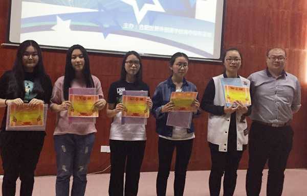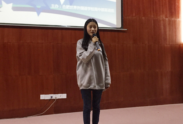 4月14日晚,合肥世界外国语学校英语风采大赛在校阶梯教室拉开序幕。本次大赛由陈海波主任指导,高中部英语组全体老师精心策划,21位世外学子各展风采,用出色镇静的表现成功HOLD住全场,掌声不断,笑声不断,欢快的气氛,出彩的表演,无处不体现着莘莘学子的英语风采。期间,校长亲临现场,对参赛选手进行鼓励和指导。此后,比赛气氛达到高潮,在英文比赛的间隙,又有日文歌曲,为本次大赛添上了浓墨重彩的一笔,风采之中更具风采。