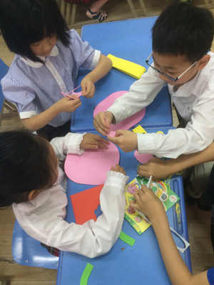 2016年5月6日上午,孩子们收到了老师们准备好的制作材料,比赛开始啦。材料一分发下去,孩子们就迫不及待地制作起来。一边理解制作要求,一边观察制作材料,接着合作拼接,再写上一份祝福,满满的爱装满包。孩子们带着争取比赛胜利和赠送母亲礼物这些想法,制作得更用心,也使得比赛成效颇丰。一群孩子获得了比赛的胜利,他们带着作品和老师一起游览校园,拍下动人的姿态,也过了一把模特的瘾。而与老师相伴游校园这份奖励,也给孩子带来至高无上的荣誉,激励孩子们再接再厉。