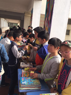 “跳蚤市场,淘到你爽!”“优惠多多,不要错过啊!”“走过路过,不要错过,瞧一瞧,看一看啦!”“买两本书送零食一份啦”……欢笑声、叫卖声、讨价还价声,人声鼎沸,不绝于耳;学生、老师,摆摊的、交易的、交流的欢乐充满了整个小学部。