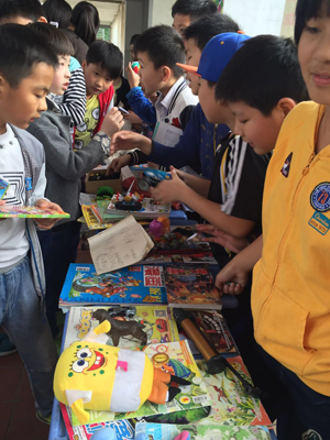 走近小小的跳蚤市场一看,嗬,好玩有趣的东西还真不少,可谓种类繁多:学习用品、益智玩具、小饰品、手工艺品、各类图书……这些东西深受买家追捧。平日里老师眼中还没长的孩子,到了卖场上,“变身”成为小摊主,做起生意来真是有模有样的,有的讨价还价,有的主动推销,还有的更是出奇招——多买多送。本是学生们之间的小小交易市场还招来了老师们关注的目光,有的老师也被小摊主面前的各种小商品所吸引,在这家挑挑,在那家看看,询问着价钱,孩子们看到这些,叫卖起来更起劲了!