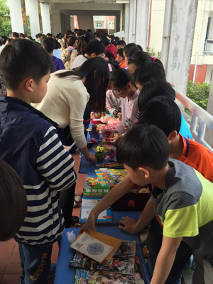 5月10日下午,世外小学部教3楼与教5楼二层的走廊上一片繁忙热闹的景象,原来这里正在举办小学部四年级跳蚤市场活动。