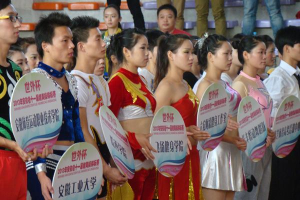 2013年10月13日,由安徽省健美操协会主办的安徽省第十一届健美操锦标赛在合肥世界外国语学校隆重举行。安徽省体育总会副主席、安徽省健美操协会主席徐晓明出席开幕式并致辞。安徽省体育总会秘书处副秘书长邵邦林、副研究员刘曙,安徽省健美操协会副主席戴忠林、杨学全、霍铜生、徐雄杰,合肥世界外国语学校校长邵忠德和来自全省高校、中小学、企业、健身会馆的23支代表队,400余名运动员、教练员、裁判员参加了开幕式。开幕式由安徽省健美操协会副主席兼秘书长郑华培主持。