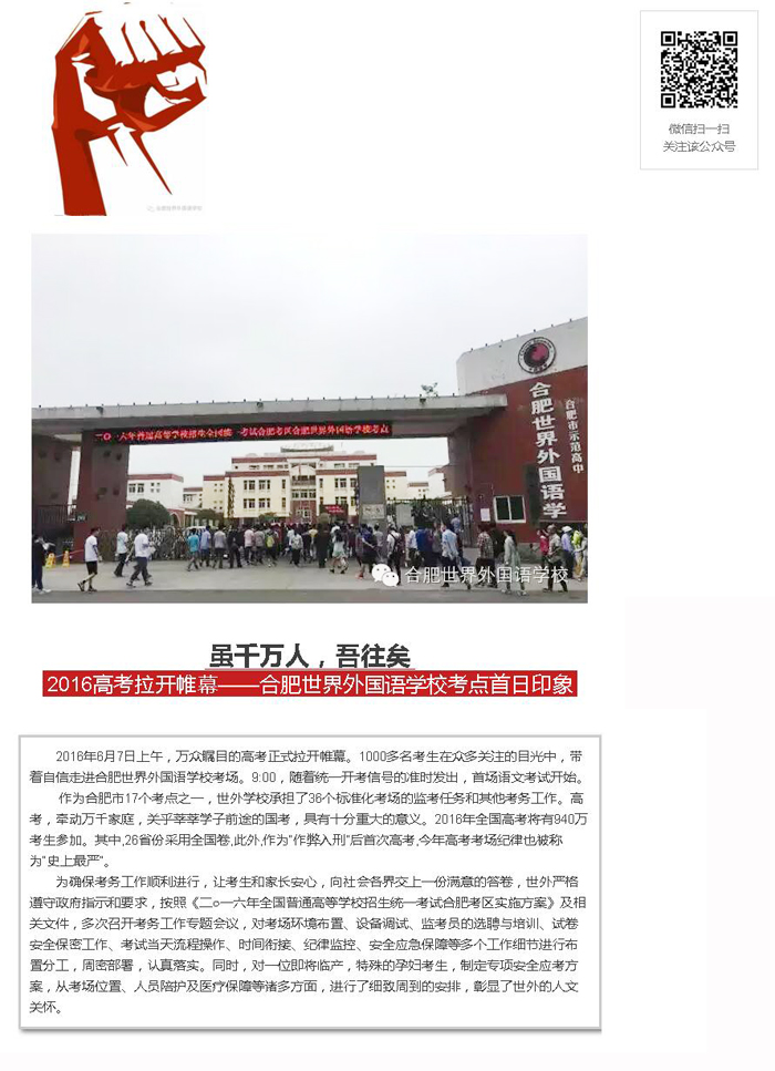 【虽千万人,吾往矣!】2016高考合肥世界外国语学校考点首日印象