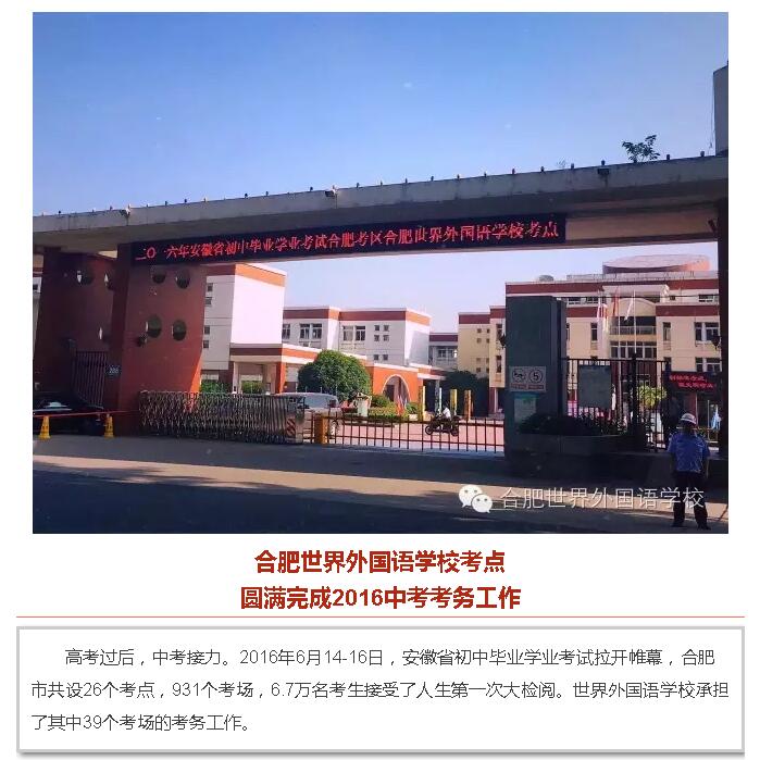 合肥世界外国语学校考点圆满完成2016中考考务工作