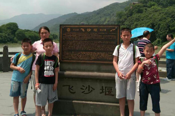 午饭过后,我们来到了世界文化遗产、人类史的奇迹—都江堰。现在岸上,我们看到了宝瓶引水口、鱼嘴分水堤、飞沙堰泄洪坝,了解到都江堰自秦朝修建以来,两千年一直发挥着防洪灌溉的作用,使成都成了沃野千里的“天府之国”。都江堰也是世界迄今为止年代最久、唯一留存、仍在一直使用,以无坝引水为特征的宏大水利工程,堪与长城媲美。都江堰凝聚了无数劳动人民的勤劳勇敢和智慧,我们不禁为身为炎黄子孙而骄傲自豪。
