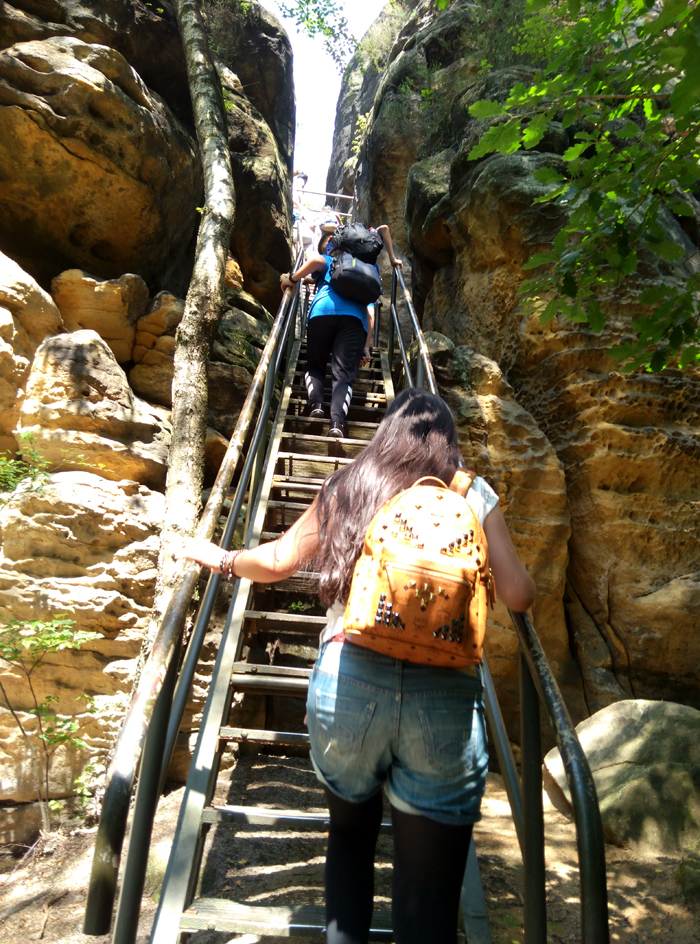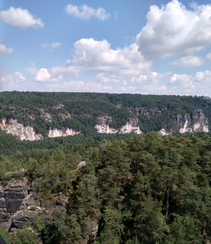 周六,晴好,略带凉意。我们在Martin老师和助教关玉娇老师的带队下,一行九人前往德国萨克森州最为有名的自然风光风景区——萨克森小瑞士国家公园(Nationalpark Sächsische Schweiz),它是德国境内山峦最为壮阔秀美的地区,极像因山色而闻名的瑞士,故因此得名小瑞士,也有游客说萨克森小瑞士国家公园是德国的张家界。